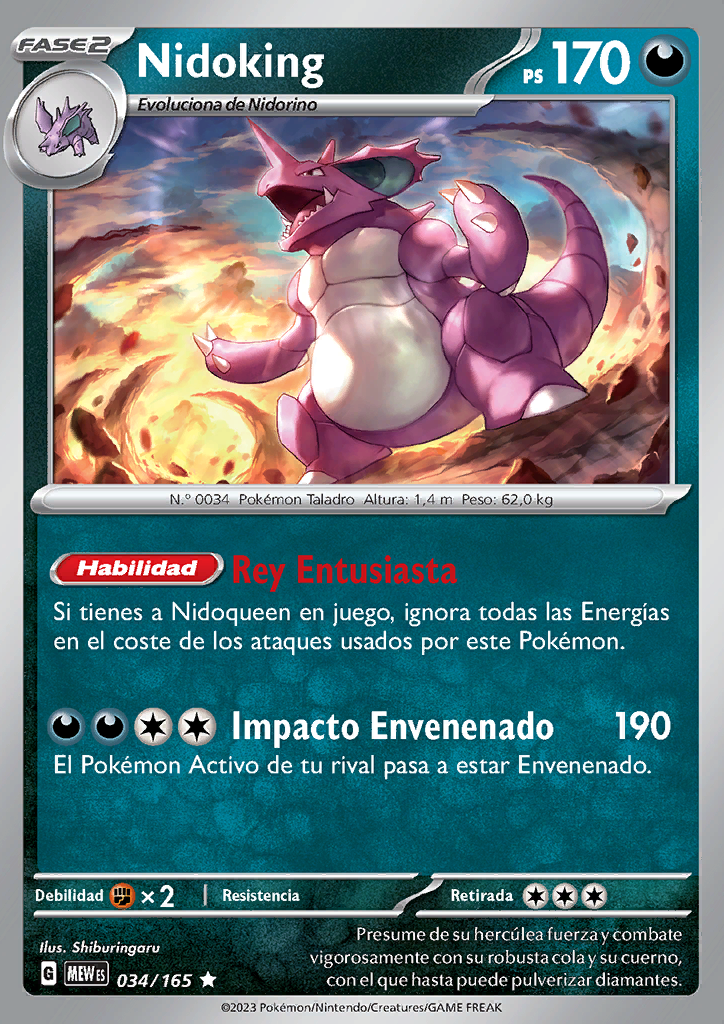 | Si tienes a Nidoqueen en juego, ignora todas las Energías en el coste de los ataques usados por este Pokémon. | |