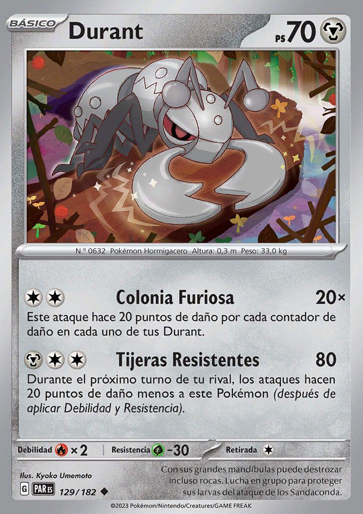 Tijeras Resistentes Durante el próximo turno de tu rival, los ataques hacen 20 puntos de daño menos a este Pokémon (después de aplicar Debilidad y Resistencia). |