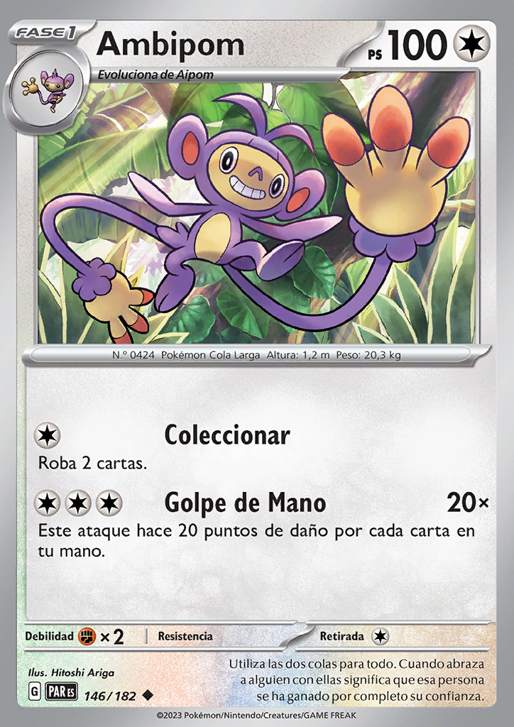 Golpe de Mano Este ataque hace 20 puntos de daño por cada carta en tu mano. |