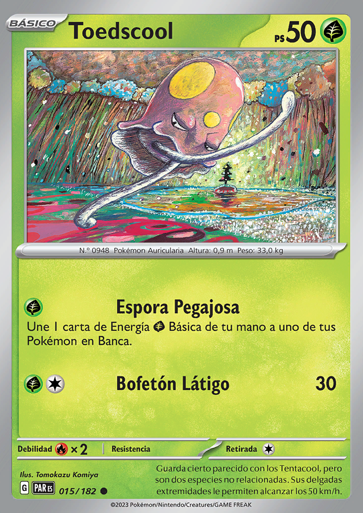 Espora Pegajosa Une 1 carta de Energía Básica de tu mano a uno de tus Pokémon en Banca. |