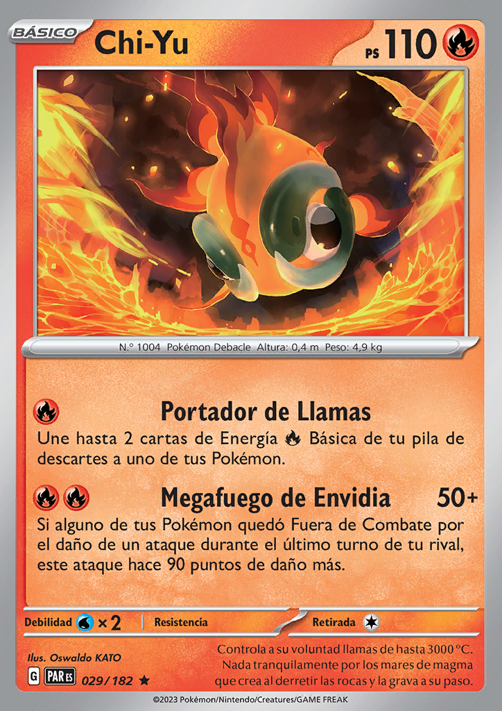 Megafuego de Envidia Si alguno de tus Pokémon quedó Fuera de Combate por el daño de un ataque durante el último turno de tu rival, este ataque hace 90 puntos de daño más. |