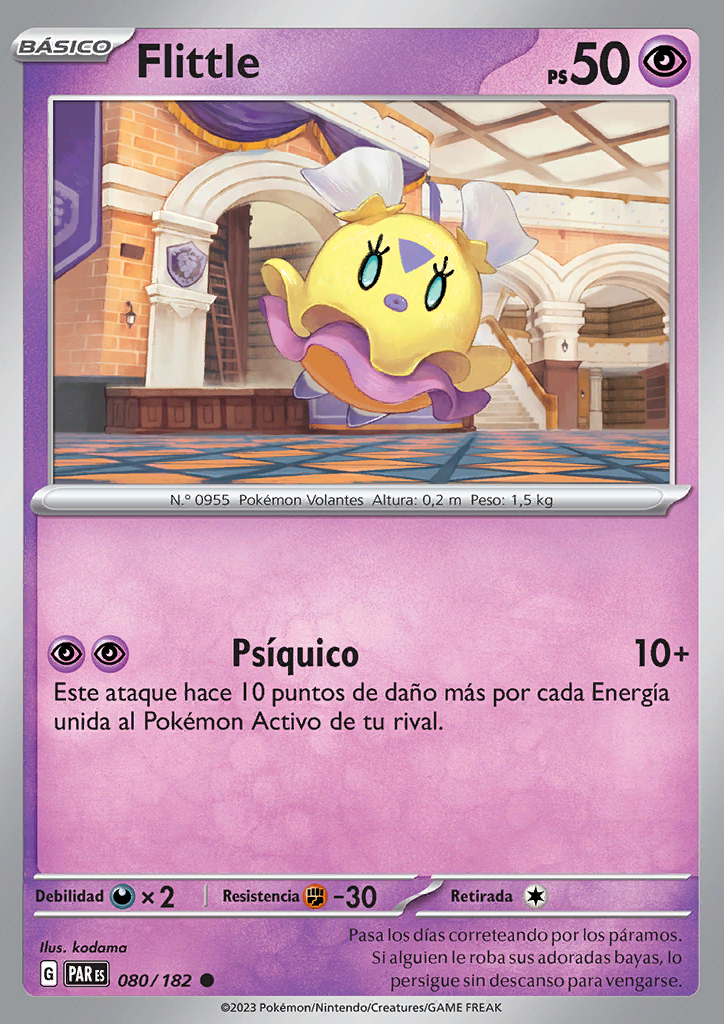 Psíquico Este ataque hace 10 puntos de daño más por cada Energía unida al Pokémon Activo de tu rival. |