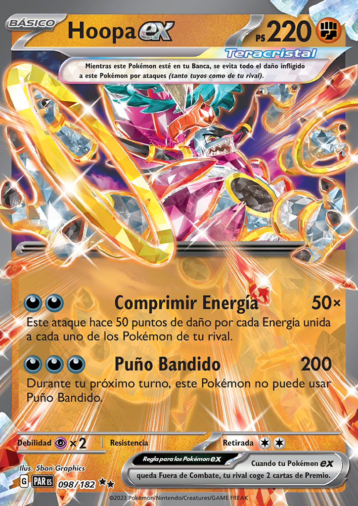 Comprimir Energía Este ataque hace 50 puntos de daño por cada Energía unida a cada uno de los Pokémon de tu rival. |