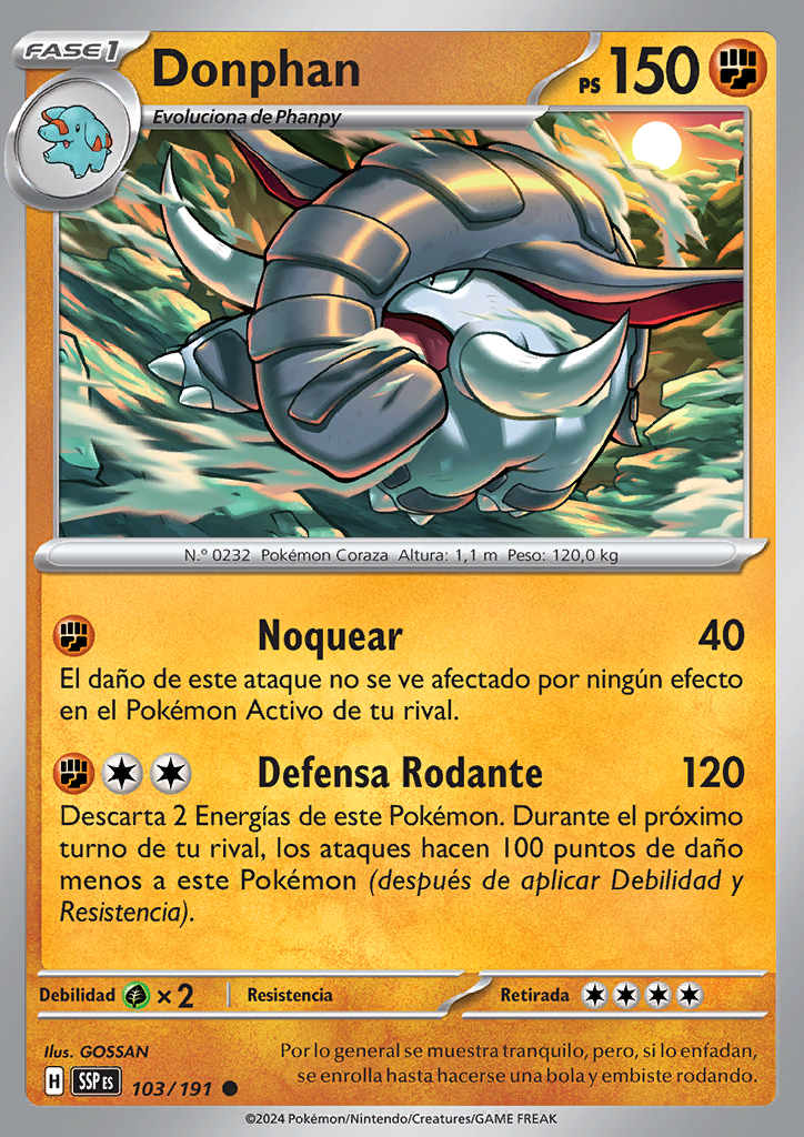 Defensa Rodante Descarta 2 Energías de este Pokémon. Durante el próximo turno de tu rival, los ataques hacen 100 puntos de daño menos a este Pokémon (después de aplicar Debilidad y Resistencia). |