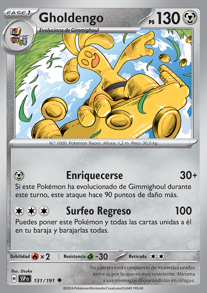 Enriquecerse Si este Pokémon ha evolucionado de Gimmighoul durante este turno, este ataque hace 90 puntos de daño más. |