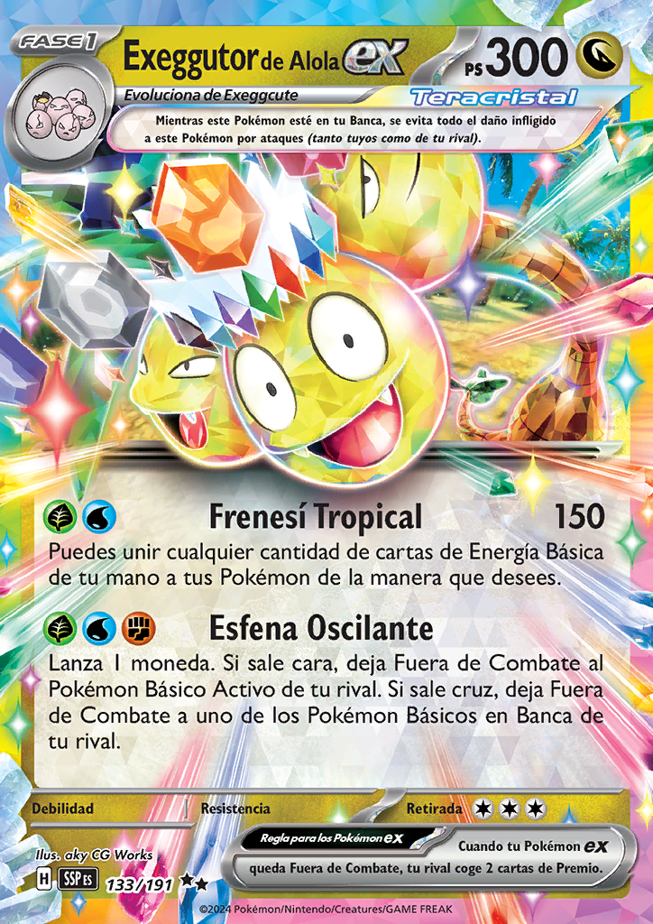 Frenesí Tropical Puedes unir cualquier cantidad de cartas de Energía Básica de tu mano a tus Pokémon de la manera que desees. |