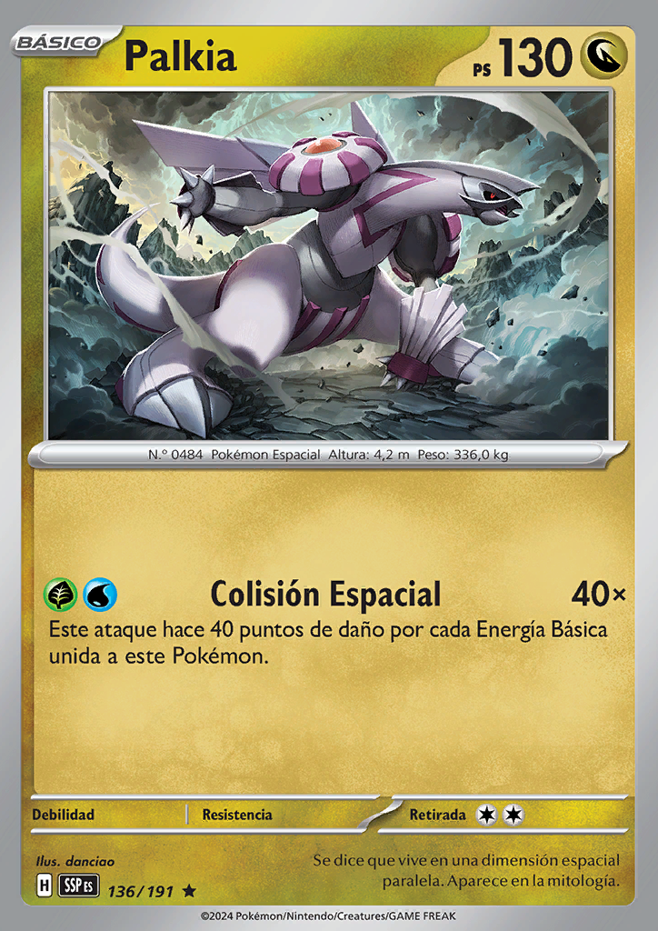 Colisión Espacial Este ataque hace 40 puntos de daño por cada Energía Básica unida a este Pokémon. |