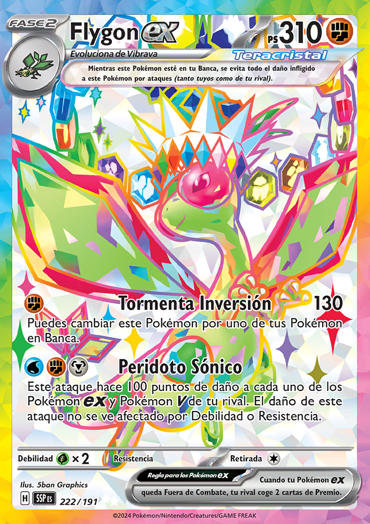 Peridoto Sónico Este ataque hace 100 puntos de daño a cada uno de los Pokémon ex y Pokémon V de tu rival. El daño de este ataque no se ve afectado por Debilidad o Resistencia. |