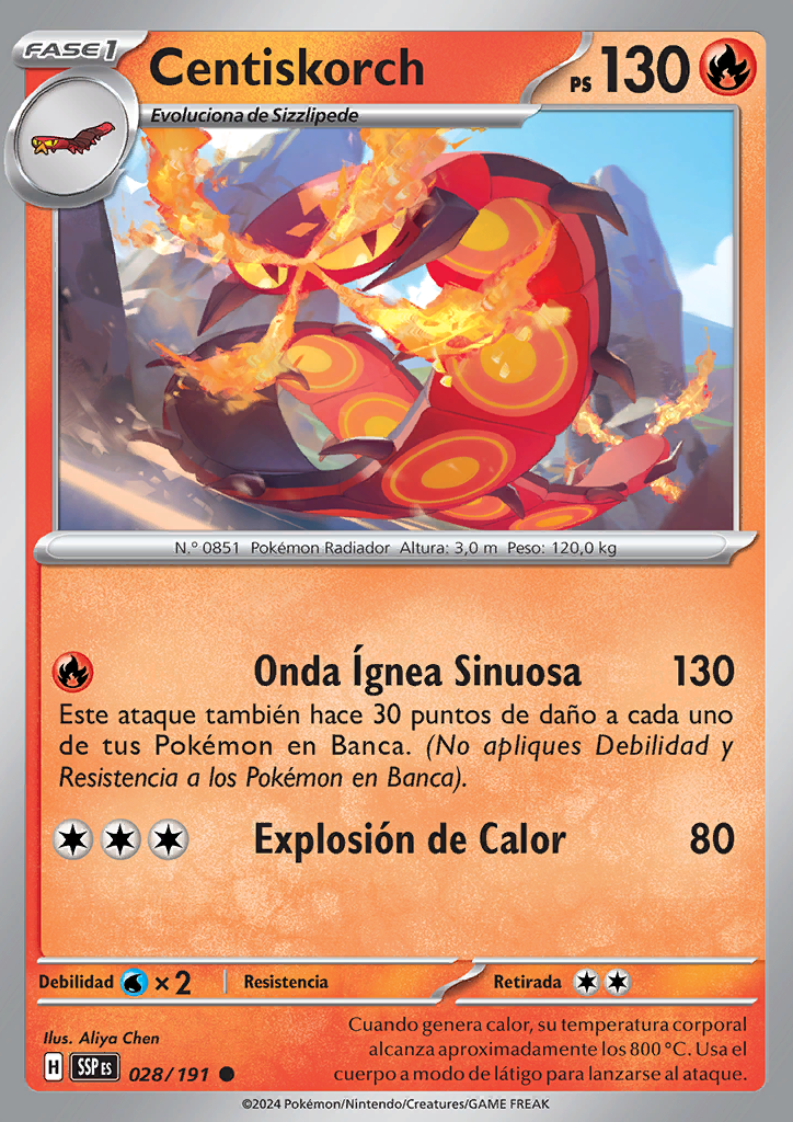 Onda Ígnea Sinuosa Este ataque también hace 30 puntos de daño a cada uno de tus Pokémon en Banca. (No apliques Debilidad y Resistencia a los Pokémon en Banca). |