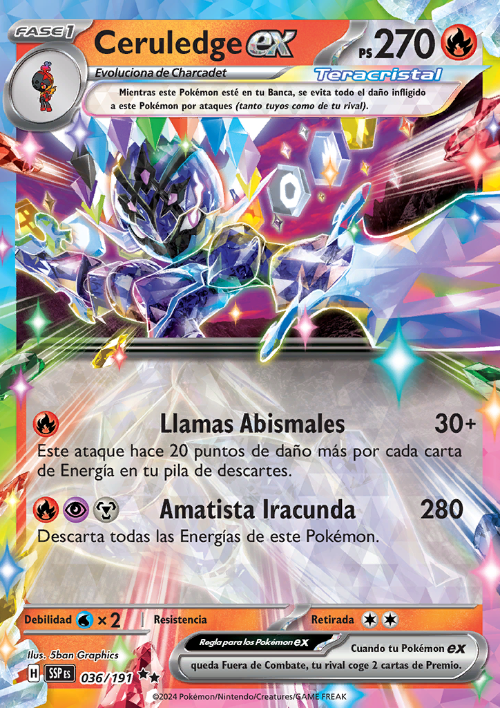 Cuando tu Pokémon ex queda Fuera de Combate, tu rival coge 2 cartas de Premio. |