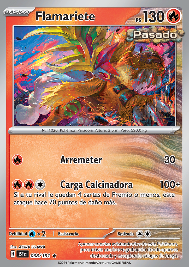 Carga Calcinadora Si a tu rival le quedan 4 cartas de Premio o menos, este ataque hace 70 puntos de daño más. |