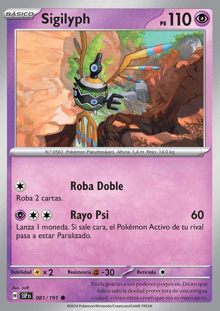 Rayo Psi Lanza 1 moneda. Si sale cara, el Pokémon Activo de tu rival pasa a estar Paralizado. |