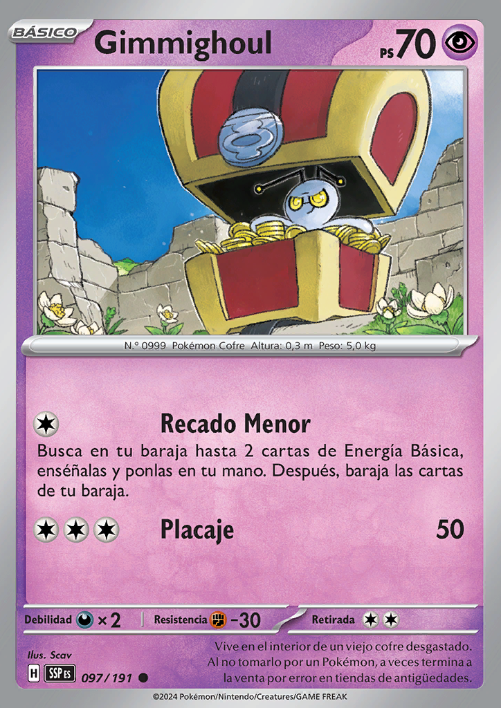 Recado Menor Busca en tu baraja hasta 2 cartas de Energía Básica, enséñalas y ponlas en tu mano. Después, baraja las cartas de tu baraja. |