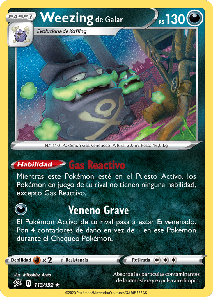 | Mientras este Pokémon esté en el Puesto Activo, los Pokémon en juego de tu rival no tienen ninguna habilidad, excepto Gas Reactivo. | |
