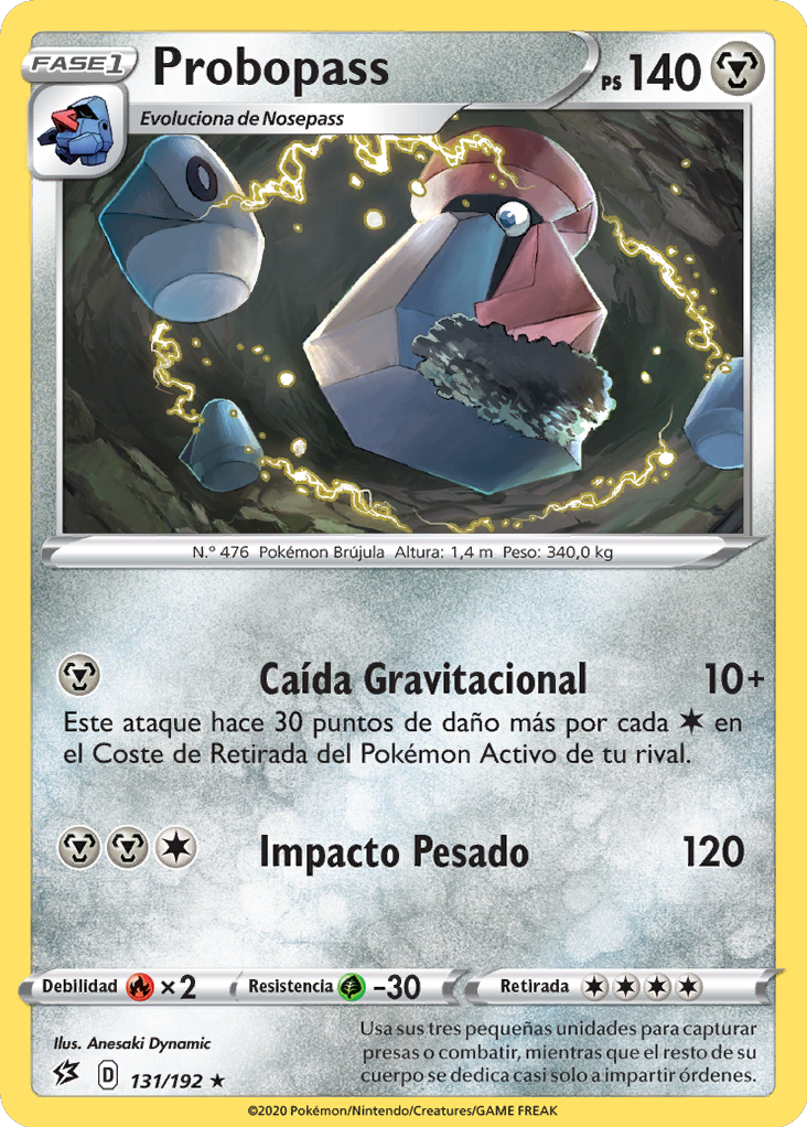 Caída Gravitacional Este ataque hace 30 puntos de daño más por cada Colorless en el Coste de Retirada del Pokémon Activo de tu rival. |