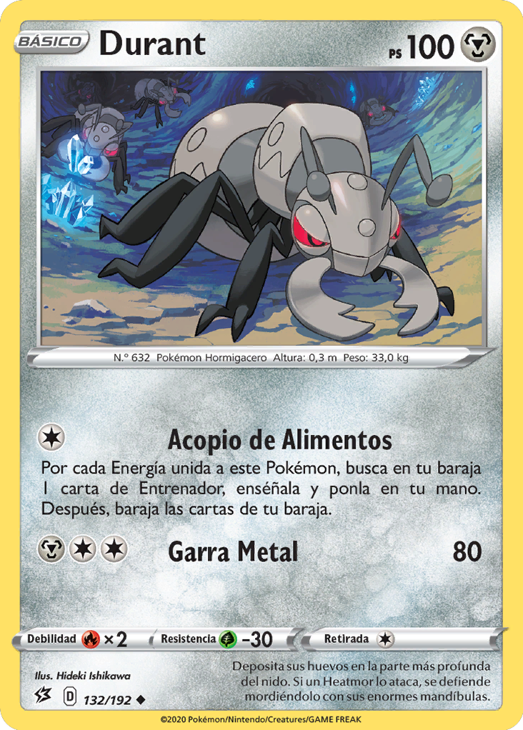 Acopio de Alimentos Por cada Energía unida a este Pokémon, busca en tu baraja 1 carta de Entrenador, enséñala y ponla en tu mano. Después, baraja las cartas de tu baraja. |