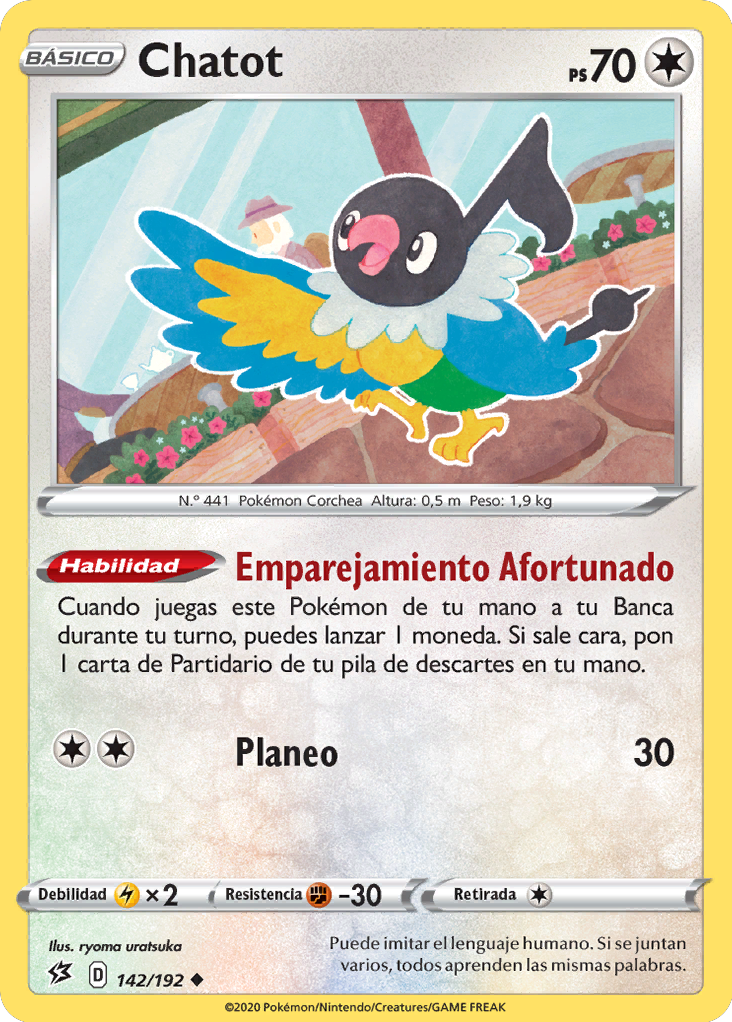 | Cuando juegas este Pokémon de tu mano a tu Banca durante tu turno, puedes lanzar 1 moneda. Si sale cara, pon 1 carta de Partidario de tu pila de descartes en tu mano. | |