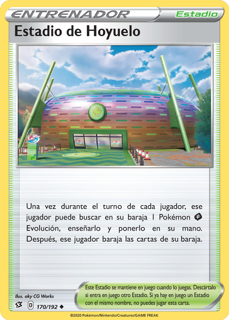 | Solo puedes jugar una carta de Estadio durante tu turno. Colócala al lado del Puesto Activo y descártala si entra en juego otro Estadio. No se puede jugar un Estadio con el mismo nombre. |