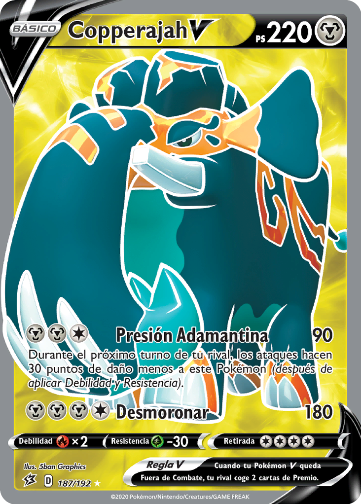 Presión Adamantina Durante el próximo turno de tu rival, los ataques hacen 30 puntos de daño menos a este Pokémon (después de aplicar Debilidad y Resistencia). |
