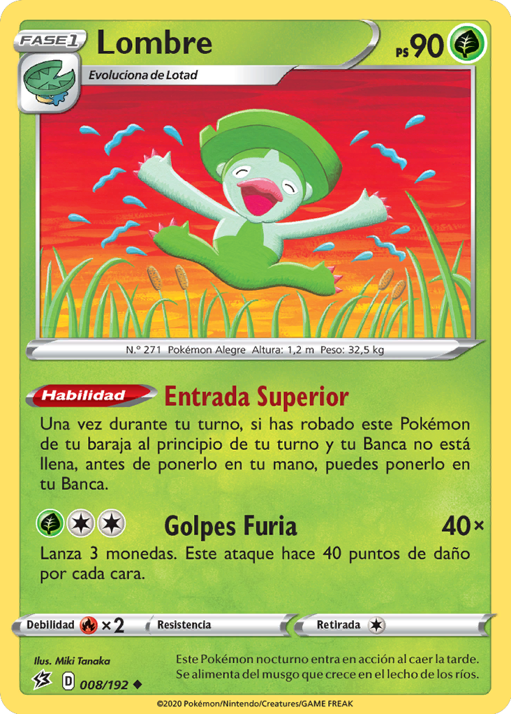 | Una vez durante tu turno, si has robado este Pokémon de tu baraja al principio de tu turno y tu Banca no está llena, antes de ponerlo en tu mano, puedes ponerlo en tu Banca. | |