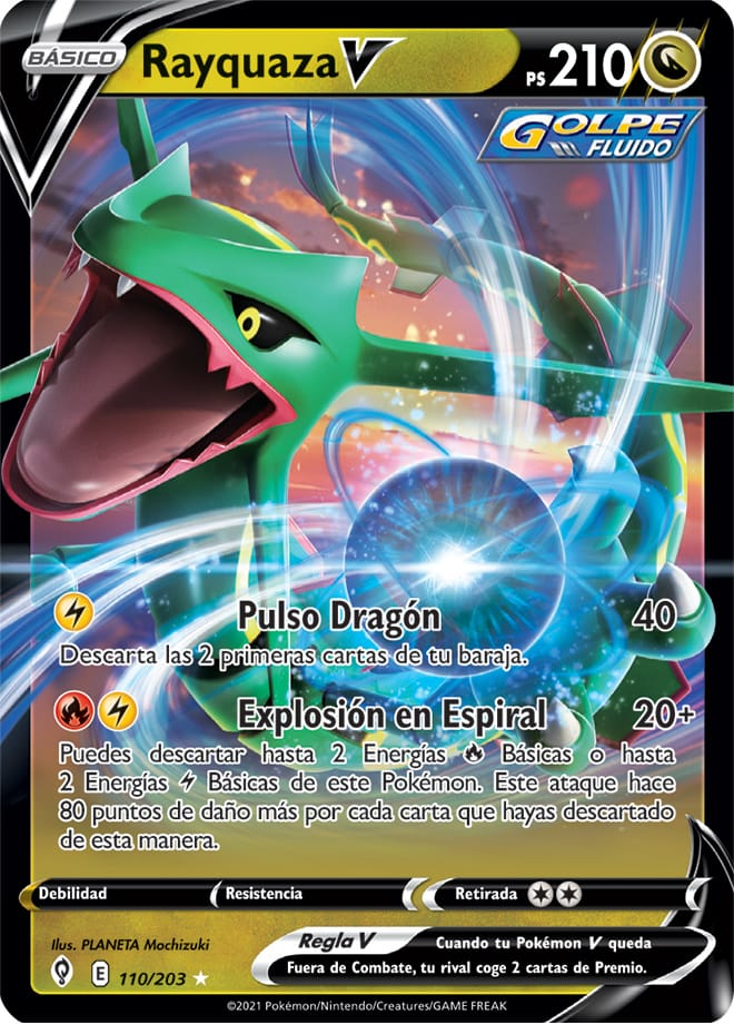 Explosión en Espiral Puedes descartar hasta 2 Energías Básicas o hasta 2 Energías Básicas de este Pokémon. Este ataque hace 80 puntos de daño más por cada carta que hayas descartado de esta manera. |