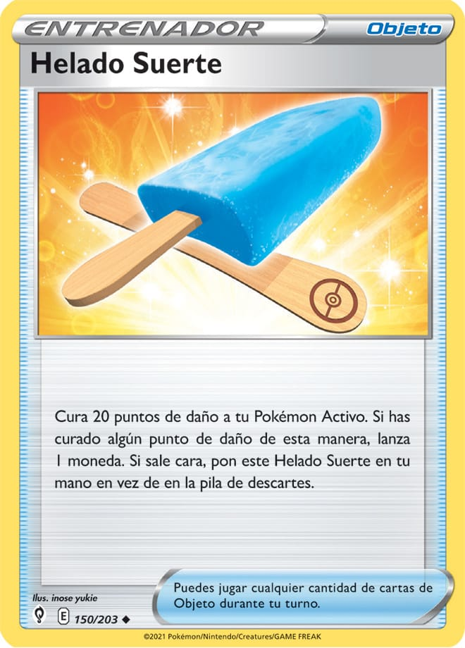 | Cura 20 puntos de daño a tu Pokémon Activo. Si has curado algún punto de daño de esta manera, lanza 1 moneda. Si sale cara, pon este Helado Suerte en tu mano en vez de en la pila de descartes. |