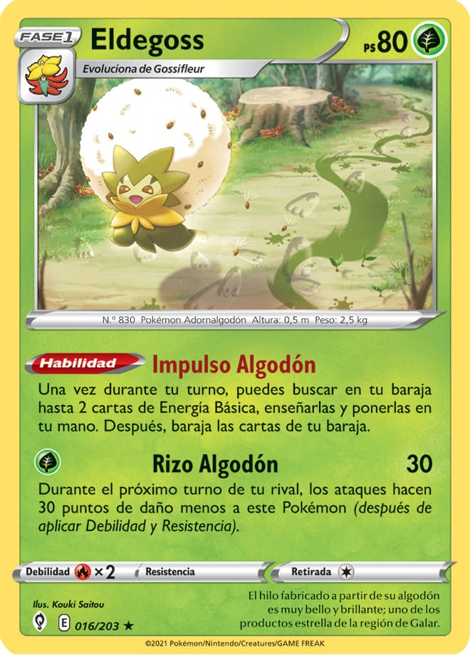 Rizo Algodón Durante el próximo turno de tu rival, los ataques hacen 30 puntos de daño menos a este Pokémon (después de aplicar Debilidad y Resistencia). |