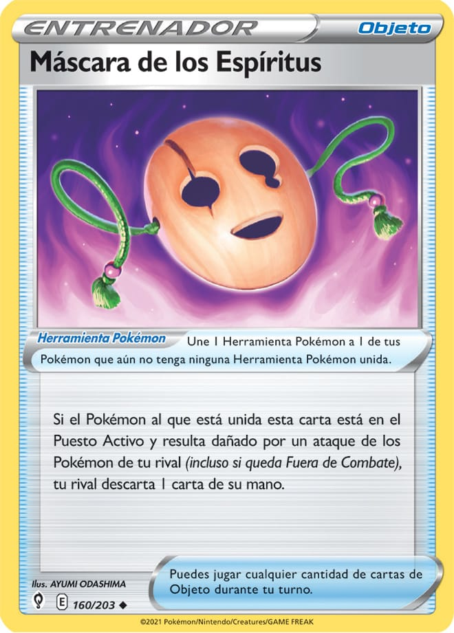 | Si el Pokémon al que está unida esta carta está en el Puesto Activo y resulta dañado por un ataque de los Pokémon de tu rival (incluso si queda Fuera de Combate), tu rival descarta 1 carta de su mano. |