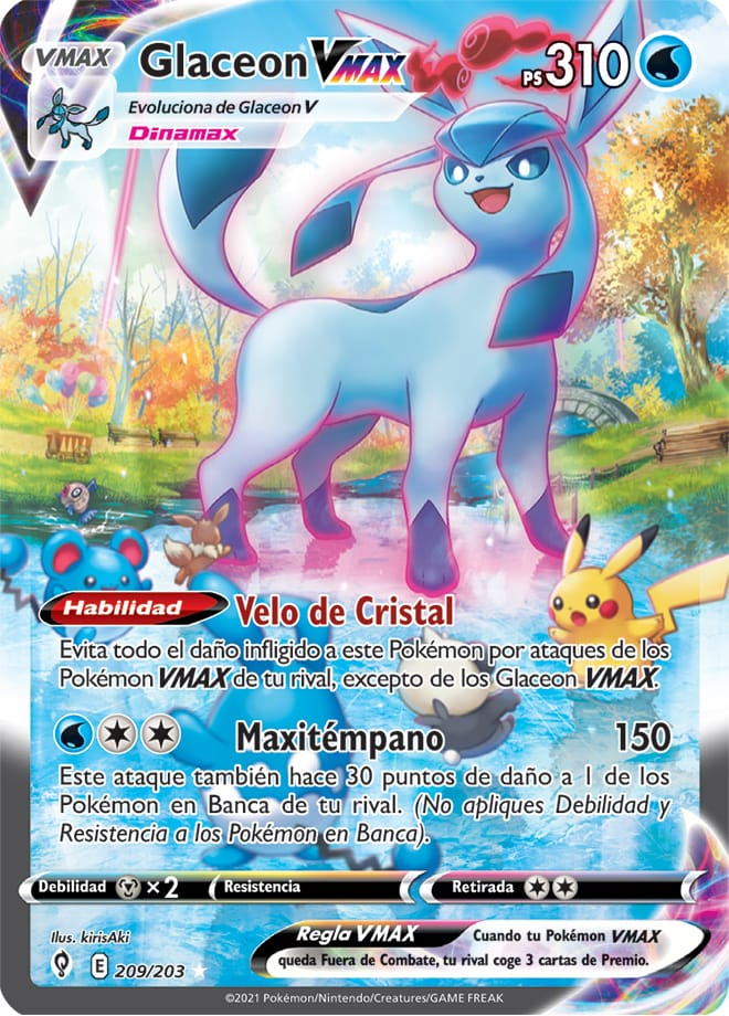 | Evita todo el daño infligido a este Pokémon por ataques de los Pokémon VMAX de tu rival, excepto de los Glaceon VMAX. | |