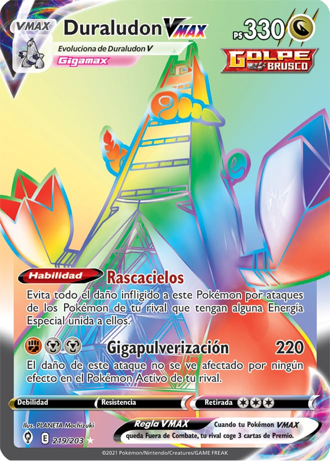 Cuando tu Pokémon VMAX queda Fuera de Combate, tu rival coge 3 cartas de Premio. |