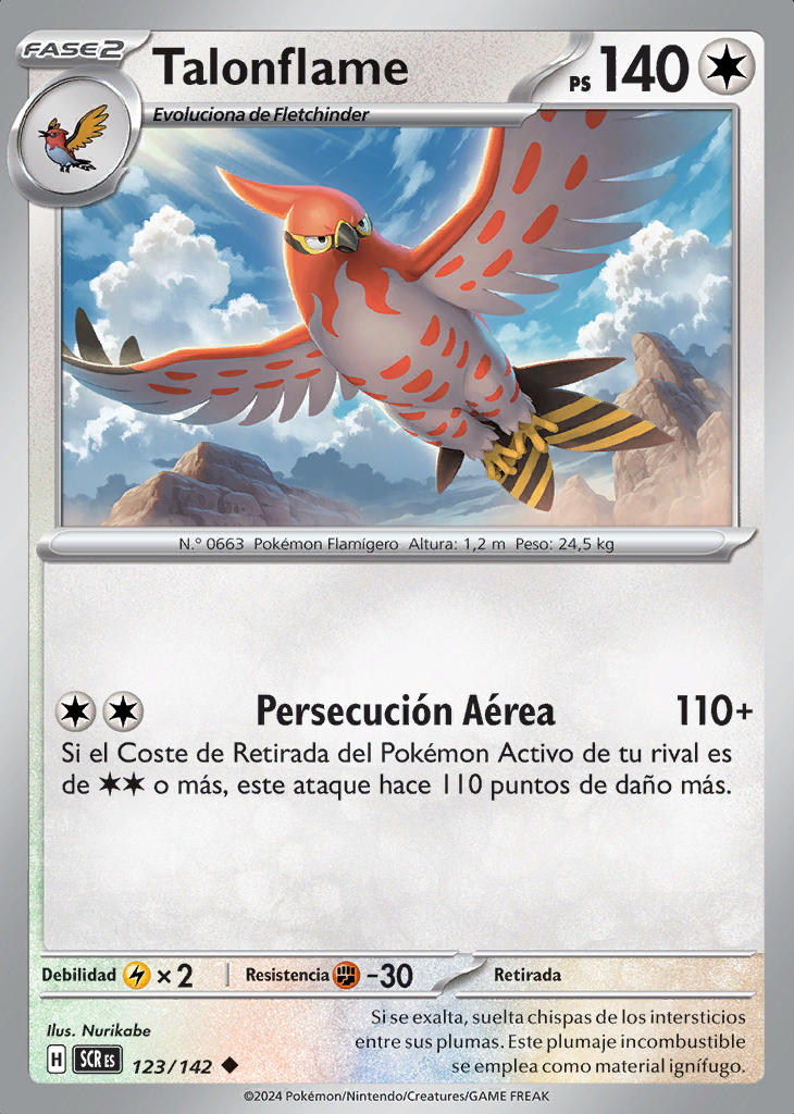 Persecución Aérea Si el Coste de Retirada del Pokémon Activo de tu rival es de o más, este ataque hace 110 puntos de daño más. |