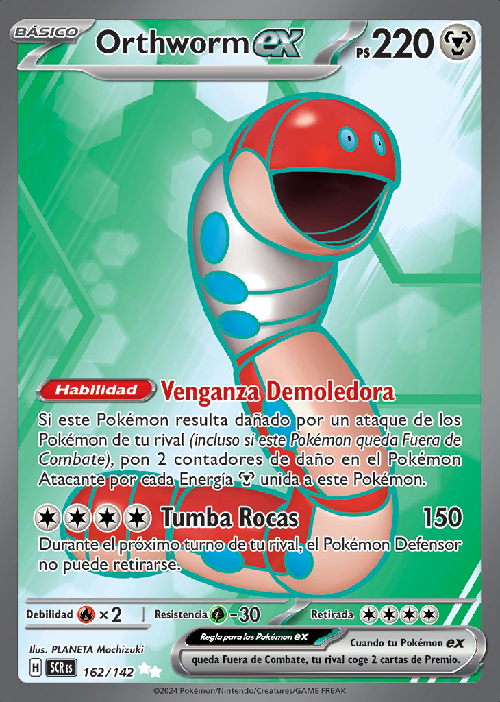 | Si este Pokémon resulta dañado por un ataque de los Pokémon de tu rival (incluso si este Pokémon queda Fuera de Combate), pon 2 contadores de daño en el Pokémon Atacante por cada Energía unida a este Pokémon. | |