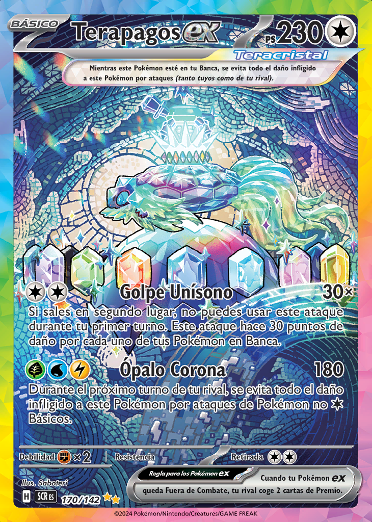 Opalo Corona Durante el próximo turno de tu rival, se evita todo el daño infligido a este Pokémon por ataques de Pokémon no Básicos. |