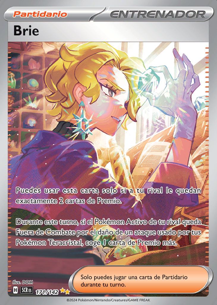 Puedes usar esta carta solo si a tu rival le quedan exactamente 2 cartas de Premio. Durante este turno, si el Pokémon Activo de tu rival queda Fuera de Combate por el daño de un ataque usado por tus Pokémon Teracristal, coge 1 carta de Premio más. |