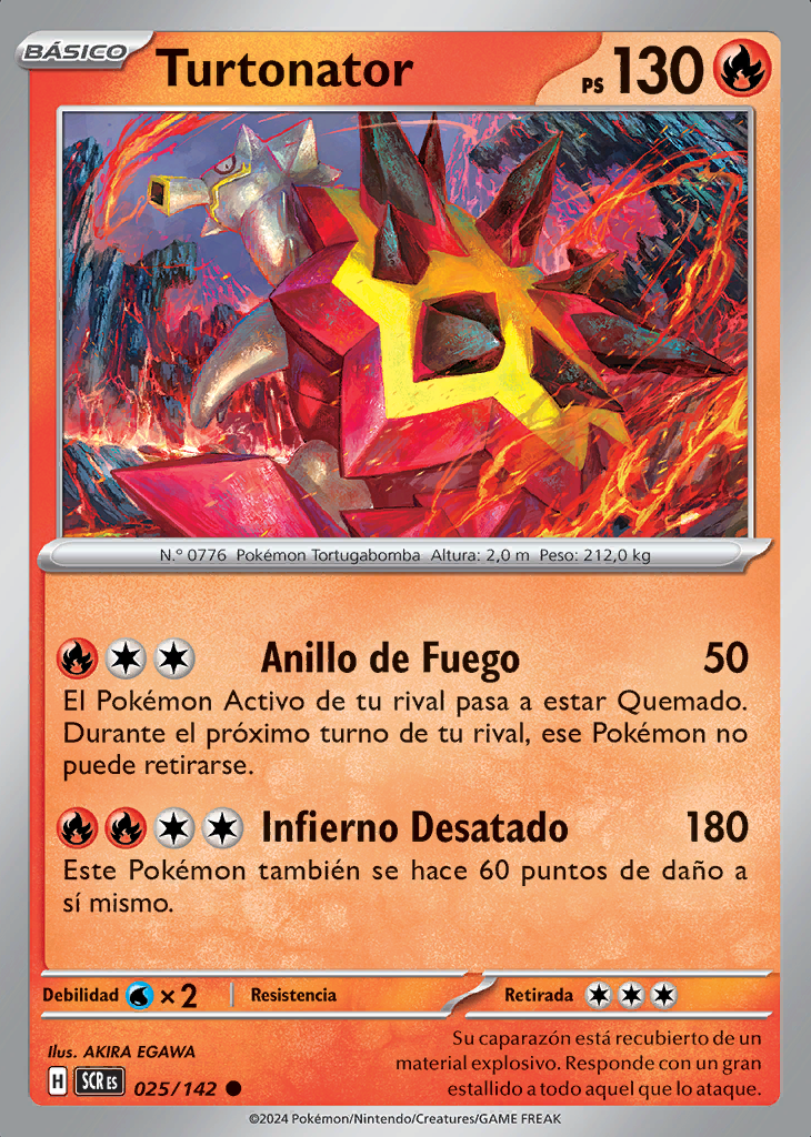 Anillo de Fuego El Pokémon Activo de tu rival pasa a estar Quemado. Durante el próximo turno de tu rival, ese Pokémon no puede retirarse. |