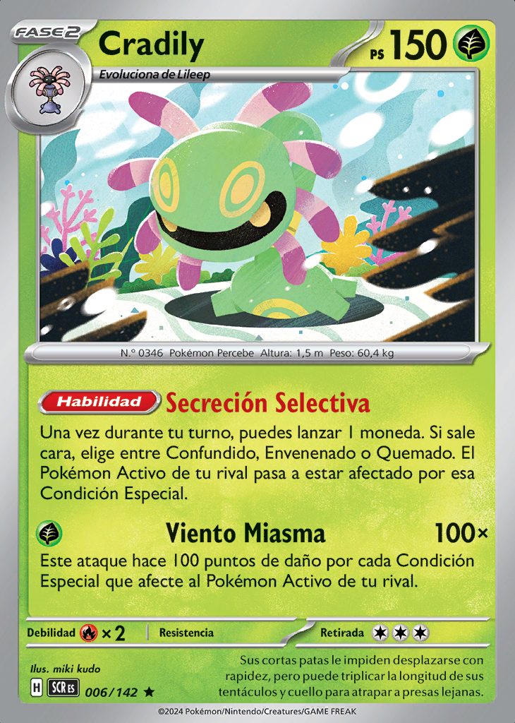 Viento Miasma Este ataque hace 100 puntos de daño por cada Condición Especial que afecte al Pokémon Activo de tu rival. |