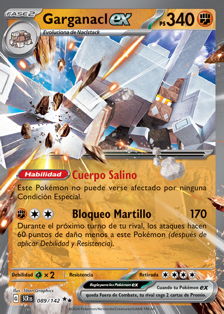 Bloqueo Martillo Durante el próximo turno de tu rival, los ataques hacen 60 puntos de daño menos a este Pokémon (después de aplicar Debilidad y Resistencia). |
