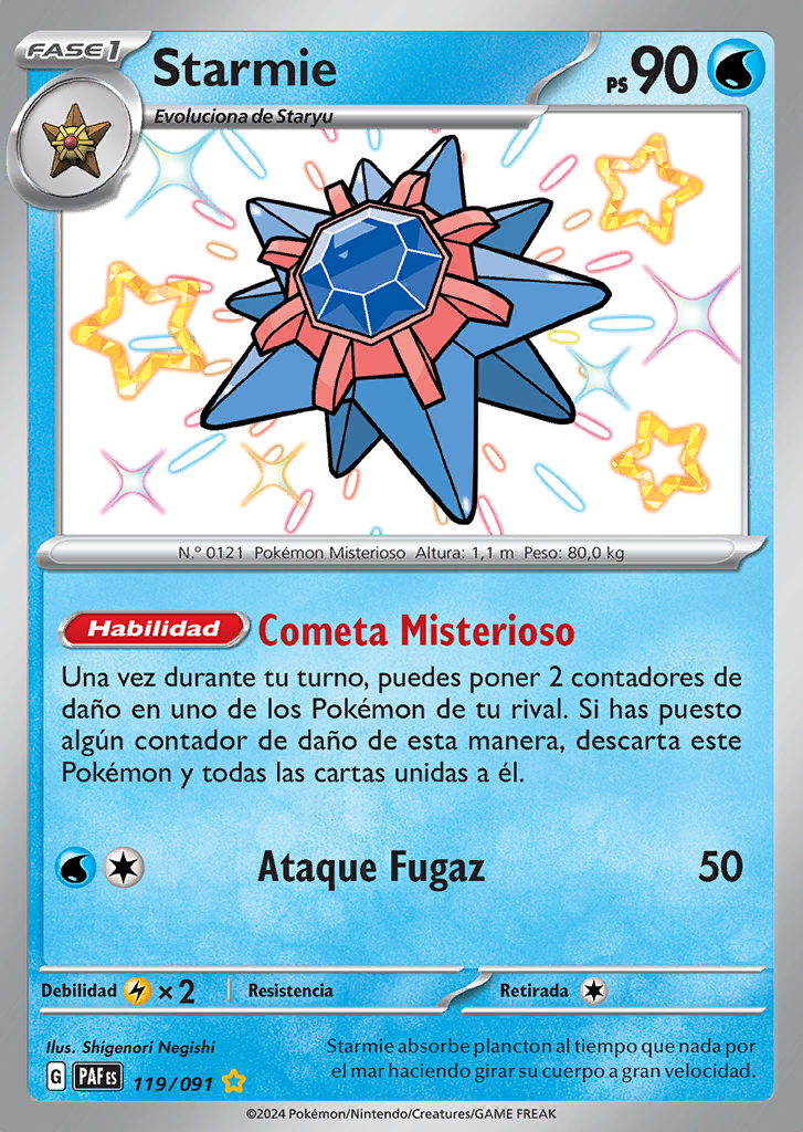 | Una vez durante tu turno, puedes poner 2 contadores de daño en uno de los Pokémon de tu rival. Si has puesto algún contador de daño de esta manera, descarta este Pokémon y todas las cartas unidas a él. | |