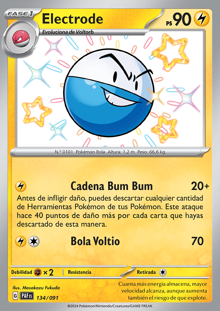 Cadena Bum Bum Antes de infligir daño, puedes descartar cualquier cantidad de Herramientas Pokémon de tus Pokémon. Este ataque hace 40 puntos de daño más por cada carta que hayas descartado de esta manera. |