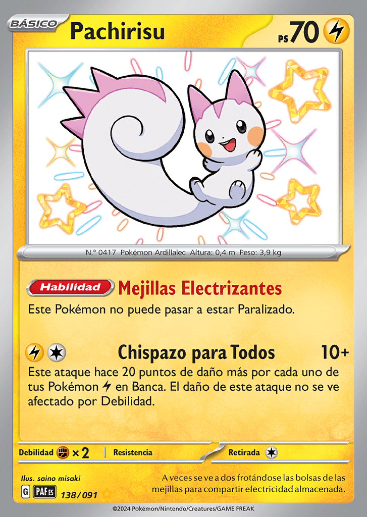Chispazo para Todos Este ataque hace 20 puntos de daño más por cada uno de tus Pokémon Lightning en Banca. El daño de este ataque no se ve afectado por Debilidad. |