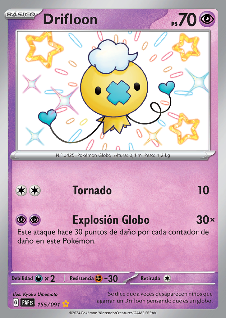 Explosión Globo Este ataque hace 30 puntos de daño por cada contador de daño en este Pokémon. |