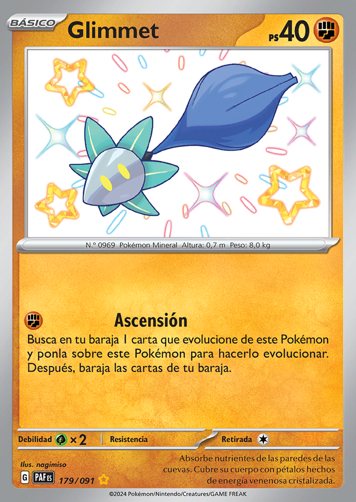 Ascensión Busca en tu baraja 1 carta que evolucione de este Pokémon y ponla sobre este Pokémon para hacerlo evolucionar. Después, baraja las cartas de tu baraja. |