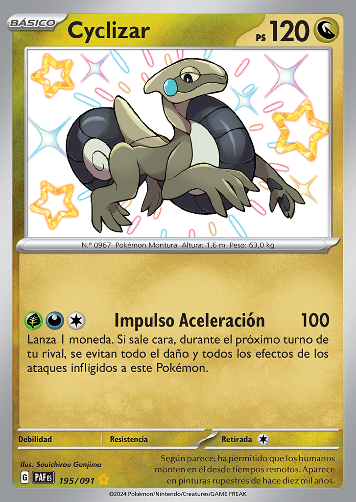 Impulso Aceleración Lanza 1 moneda. Si sale cara, durante el próximo turno de tu rival, se evitan todo el daño y todos los efectos de los ataques infligidos a este Pokémon. |