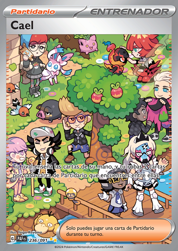 | Tu rival enseña las cartas de su mano, y tú robas 2 cartas por cada carta de Partidario que encuentres entre ellas. |