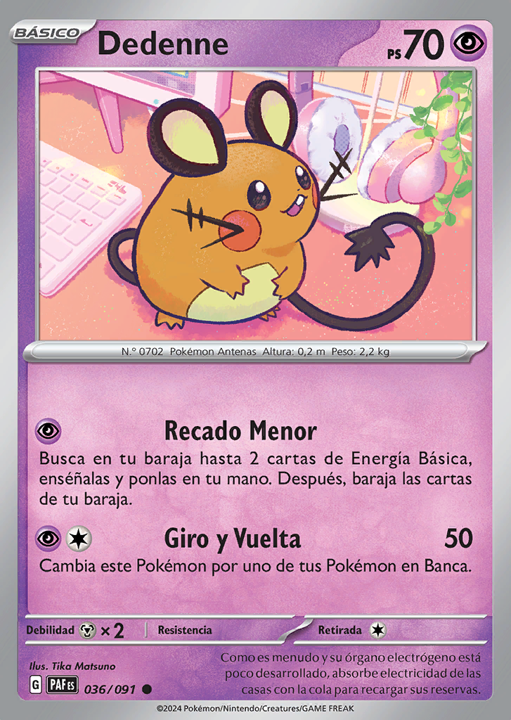 Recado Menor Busca en tu baraja hasta 2 cartas de Energía Básica, enséñalas y ponlas en tu mano. Después, baraja las cartas de tu baraja. |