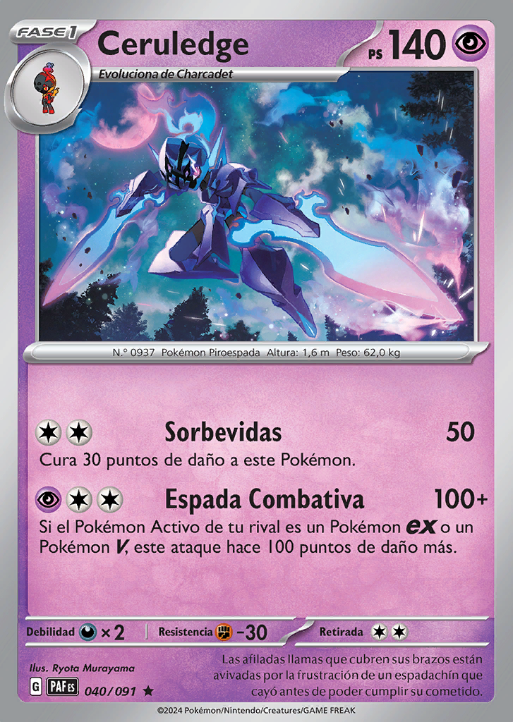 Espada Combativa Si el Pokémon Activo de tu rival es un Pokémon ex o un Pokémon V, este ataque hace 100 puntos de daño más. |