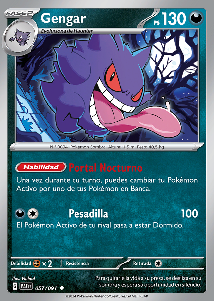 Pesadill El Pokémon Activo de tu rival pasa a estar Dormido. |