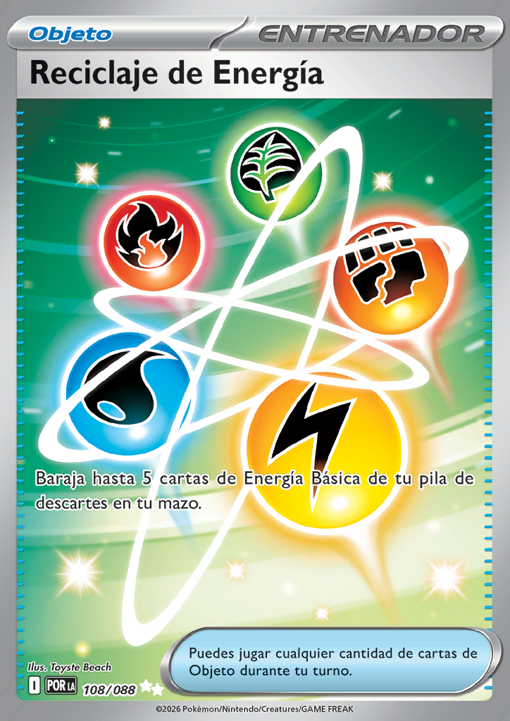 | Pon hasta 5 cartas de Energía Básica de tu pila de descartes en tu baraja y barájalas todas. |