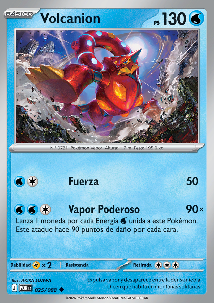 Vapor Poderoso Lanza 1 moneda por cada Energía unida a este Pokémon. Este ataque hace 90 puntos de daño por cada cara. |