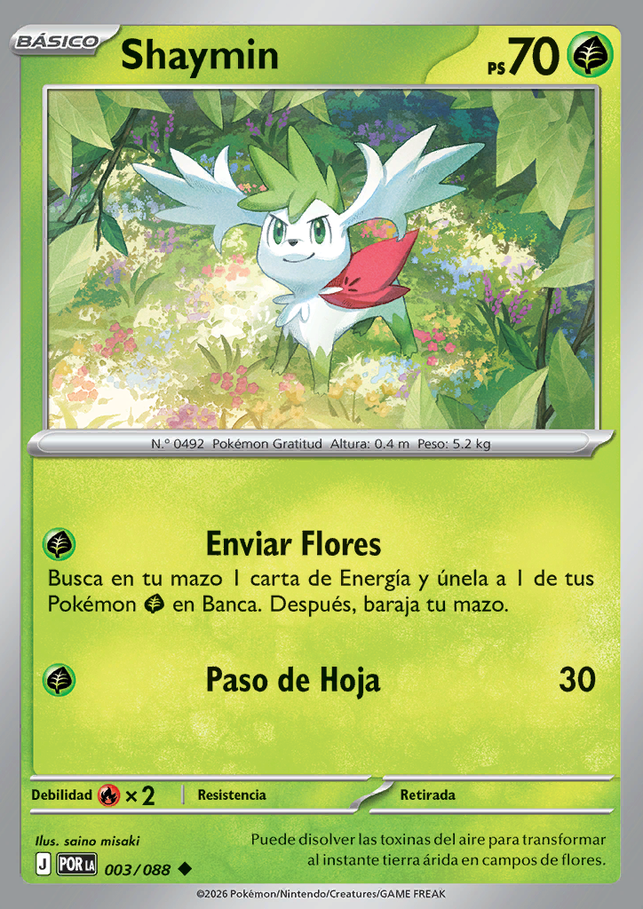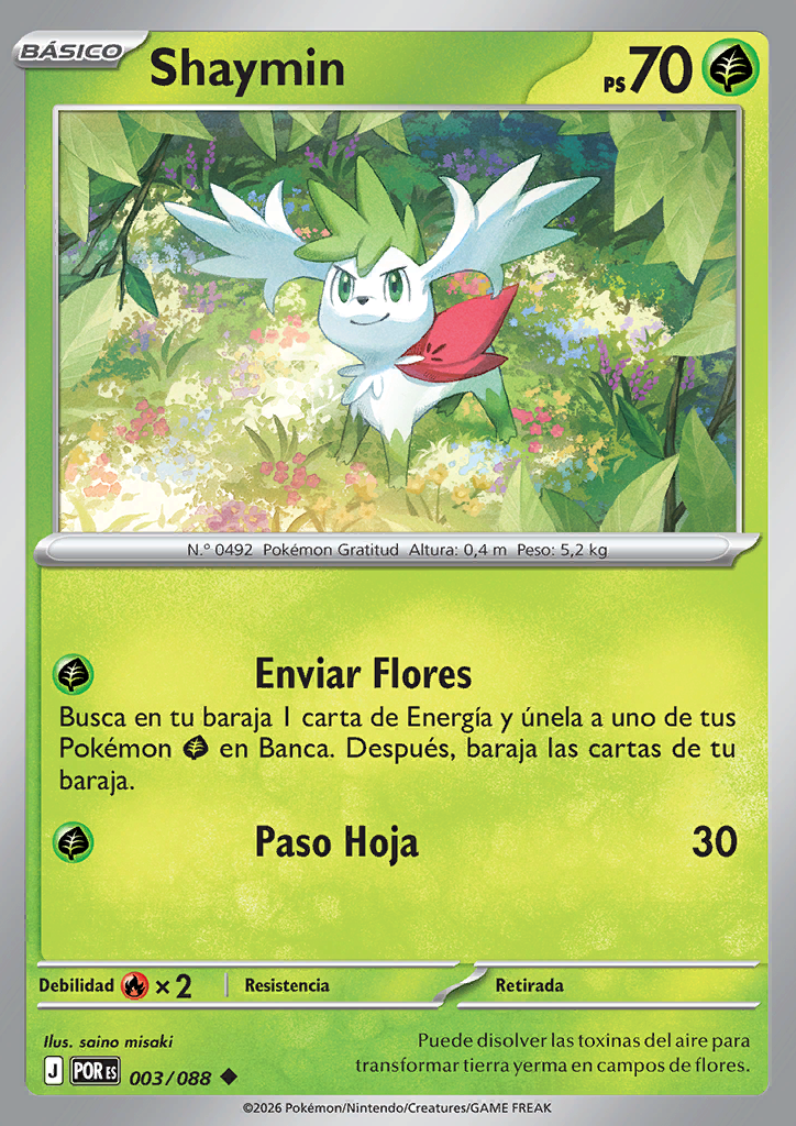 Enviar Flores Busca en tu baraja carta de Energía y únela a uno de tus Pokémon en Banca, Después, baraja las cartas de tu baraja. |